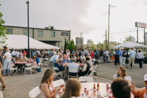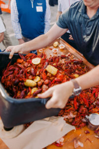 The evening kicked off with drinks, hors d’oeuvres, and good conversations in Founders’ new innovation space. As the night progressed, the party moved outside where the crawfish and boiled shrimp were in abundance! Along with the crawfish was a buffet of zesty Cajun specialties including jambalaya, shrimp rotini pasta and bread pudding.